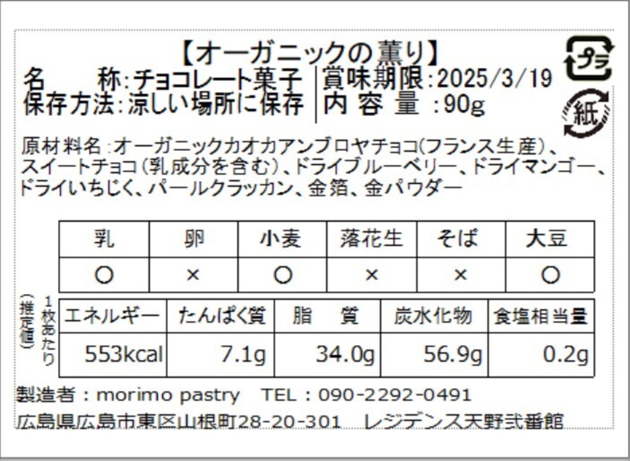 ✴︎オーガニックの薫り(ビターチョコタブレット)