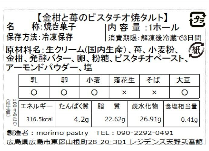 【2025年2月分】2月20日締め切りピスタチオと苺の焼タルト&金柑焼タルト(2月下旬発送予定)